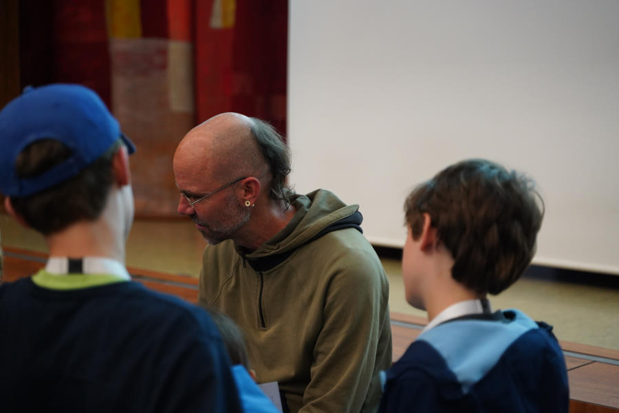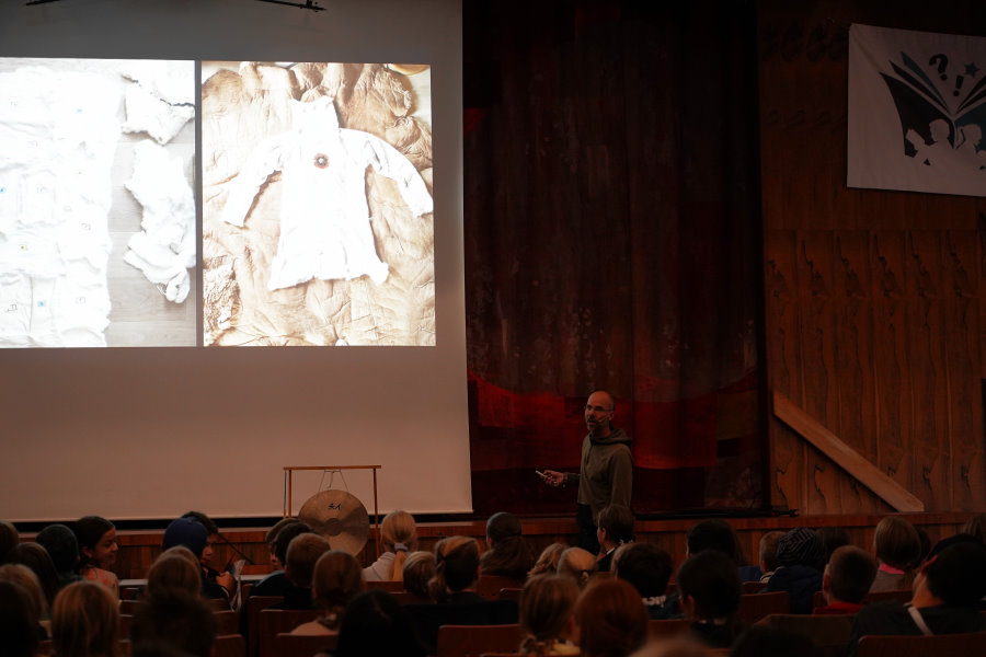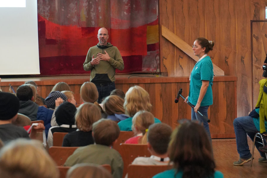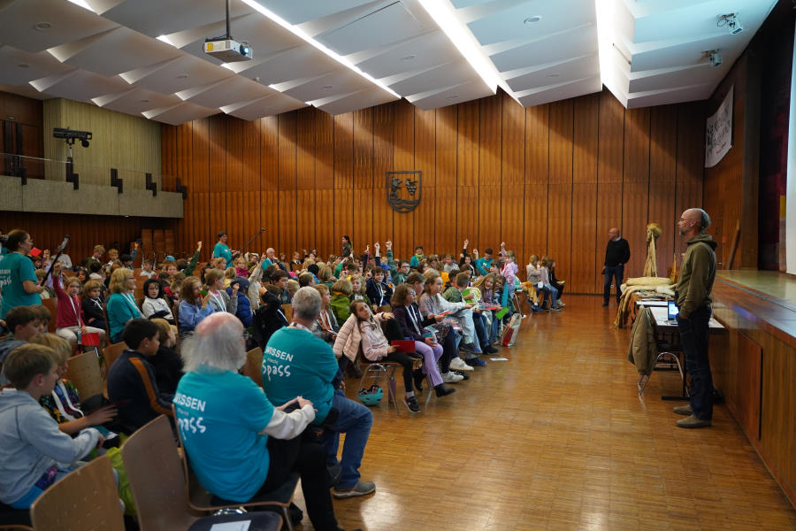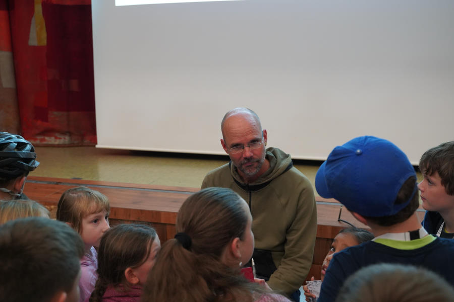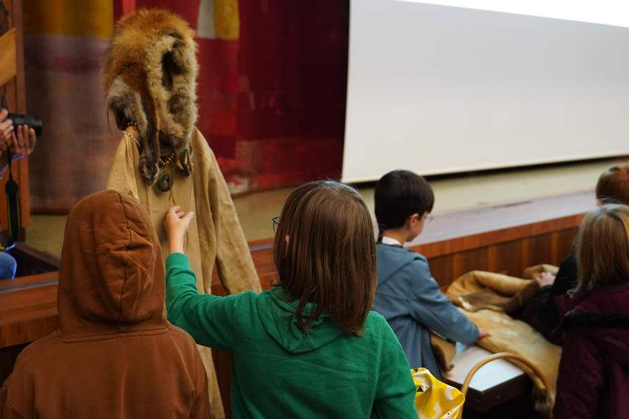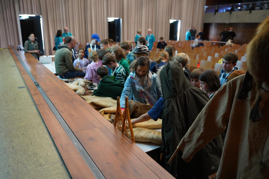 Außerdem bringt er seine gesamte, selbstgefertigte Steinzeitausrüstung zum Anschauen und Anfassen mit.